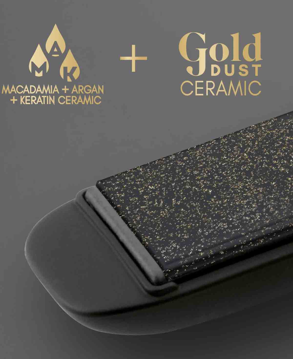 Die schwebenden Goldstaub-Keramik- und MAK-Platten kombinieren die Leitfähigkeit von Gold mit der sanften Kontrolle von Mineralöl-Keramik für ein besonders sanftes Styling und lang anhaltende, glänzende Styles.